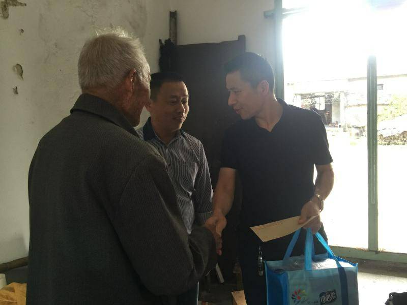 重阳节浙江沈阳伟华企业宣传策划有限公司纸业陈少林董事长、生产部经理邵忠华等企业高层前往结对村看望困难老人